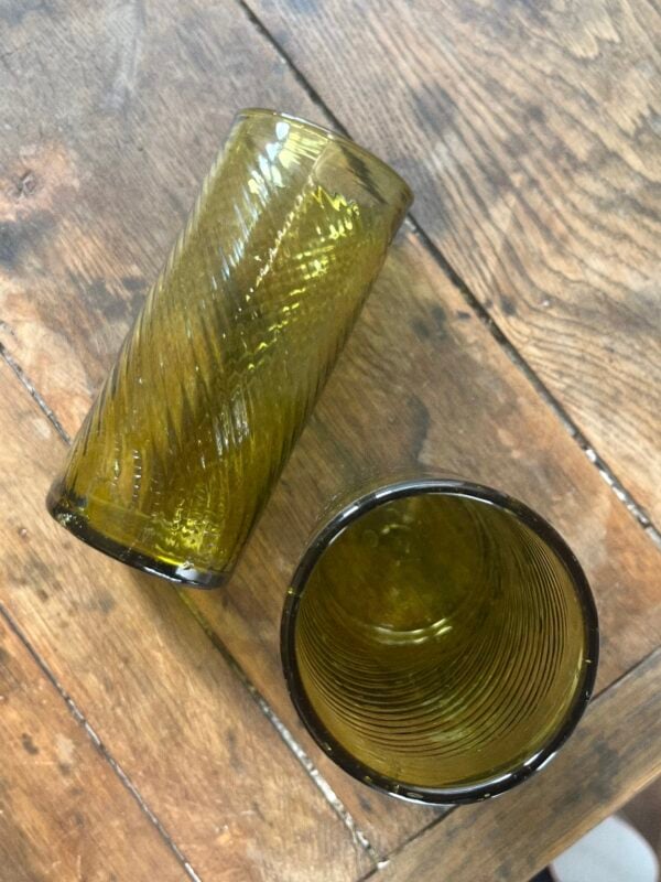 Ils sont entièrement réalisés à la main et chaque création est unique. Par conséquent, il peut y avoir une légère variation de couleur, de texture et de taille entre chaque pièce (environ 1 cm à 2 cm d’une pièce à l’autre). Sur la base de chaque objet, on peut sentir la marque de pontil laissée par la canne du souffleur de verre. La présence de cette marque indique que le verre a été soufflé à main levée. C’est la beauté du fait main.